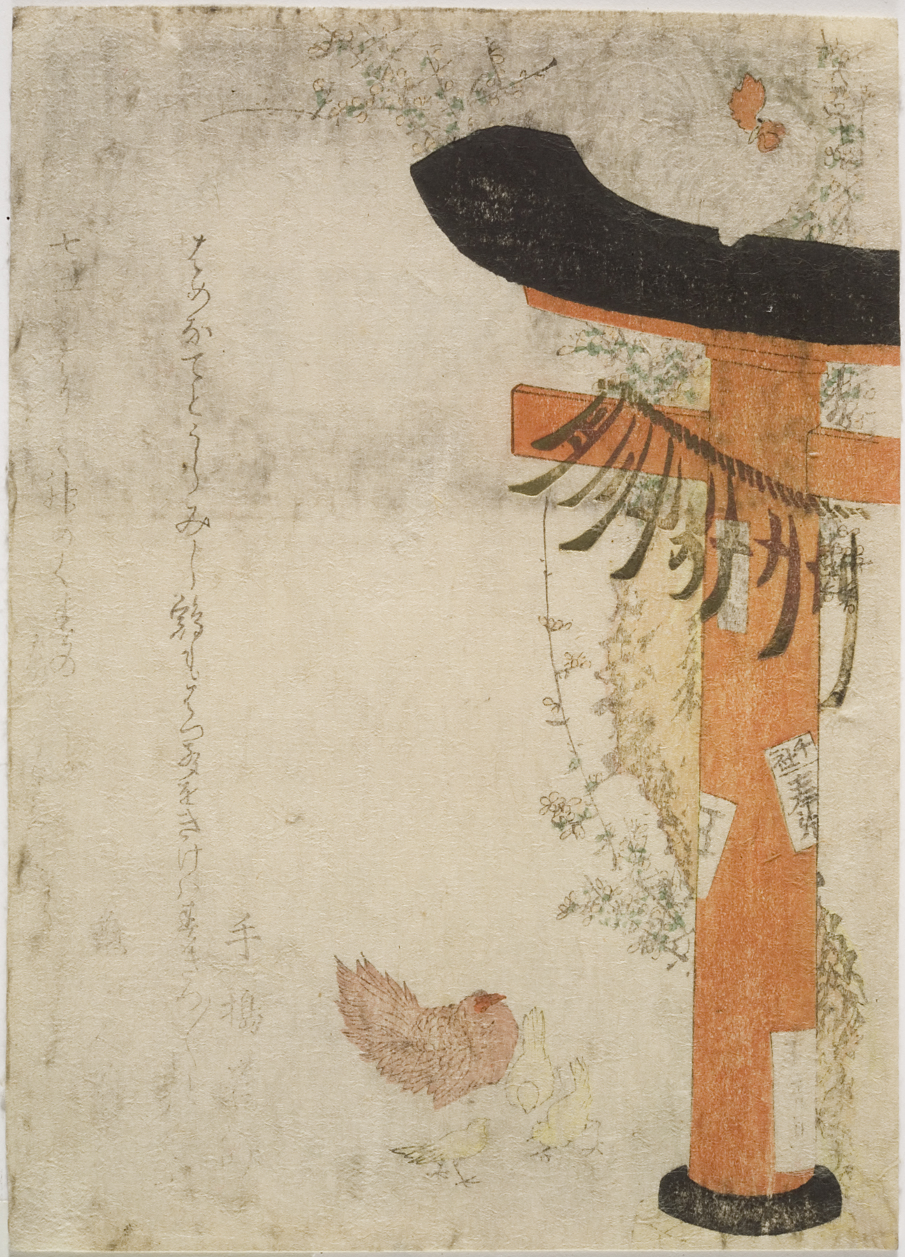 chickens by gate to shrine, 1813, Edo period (1600–1868)