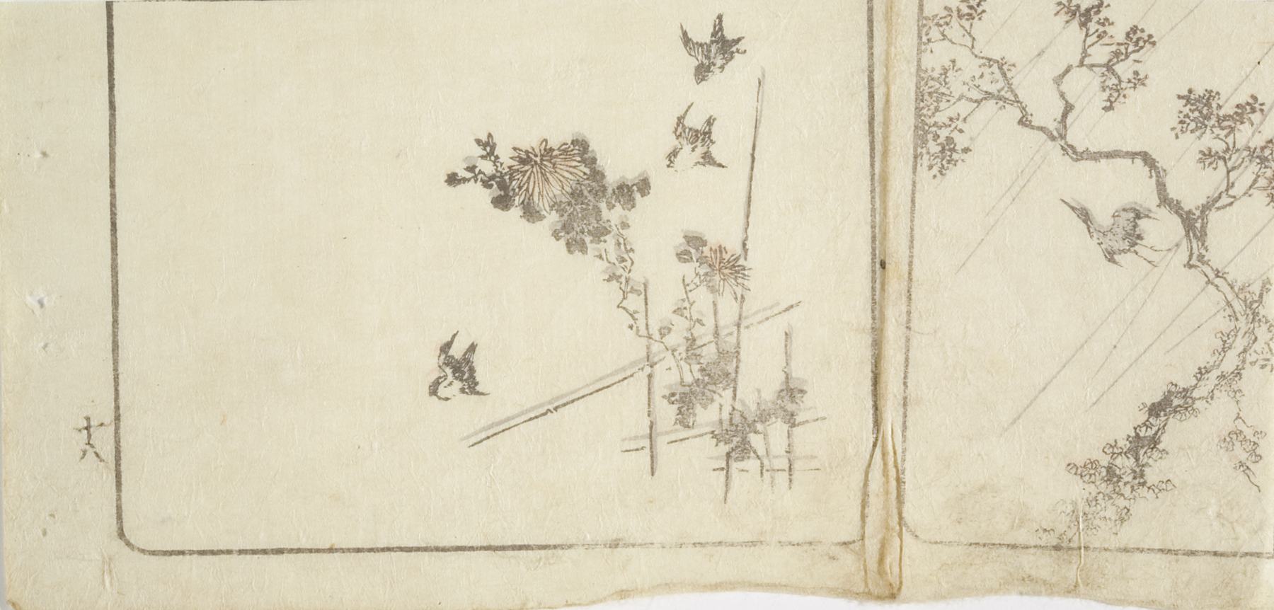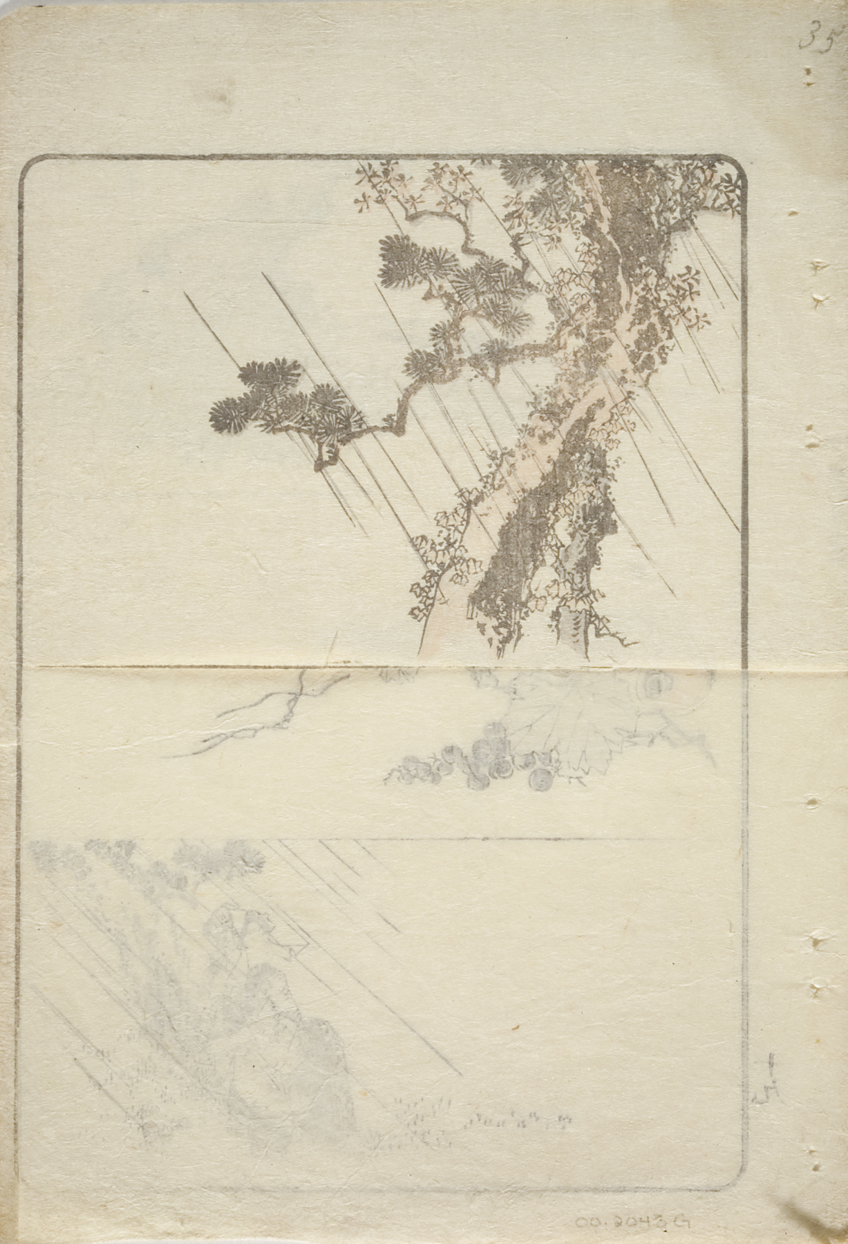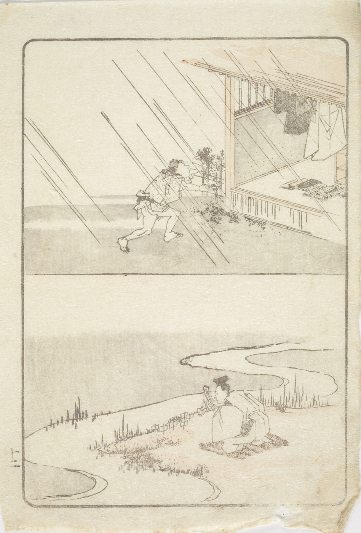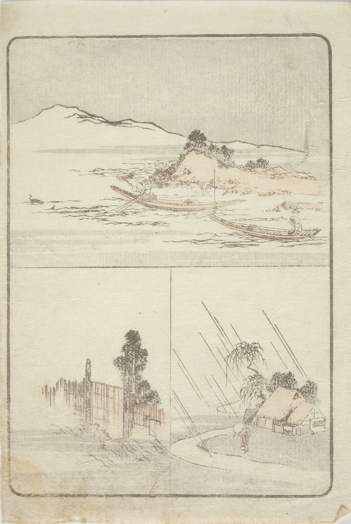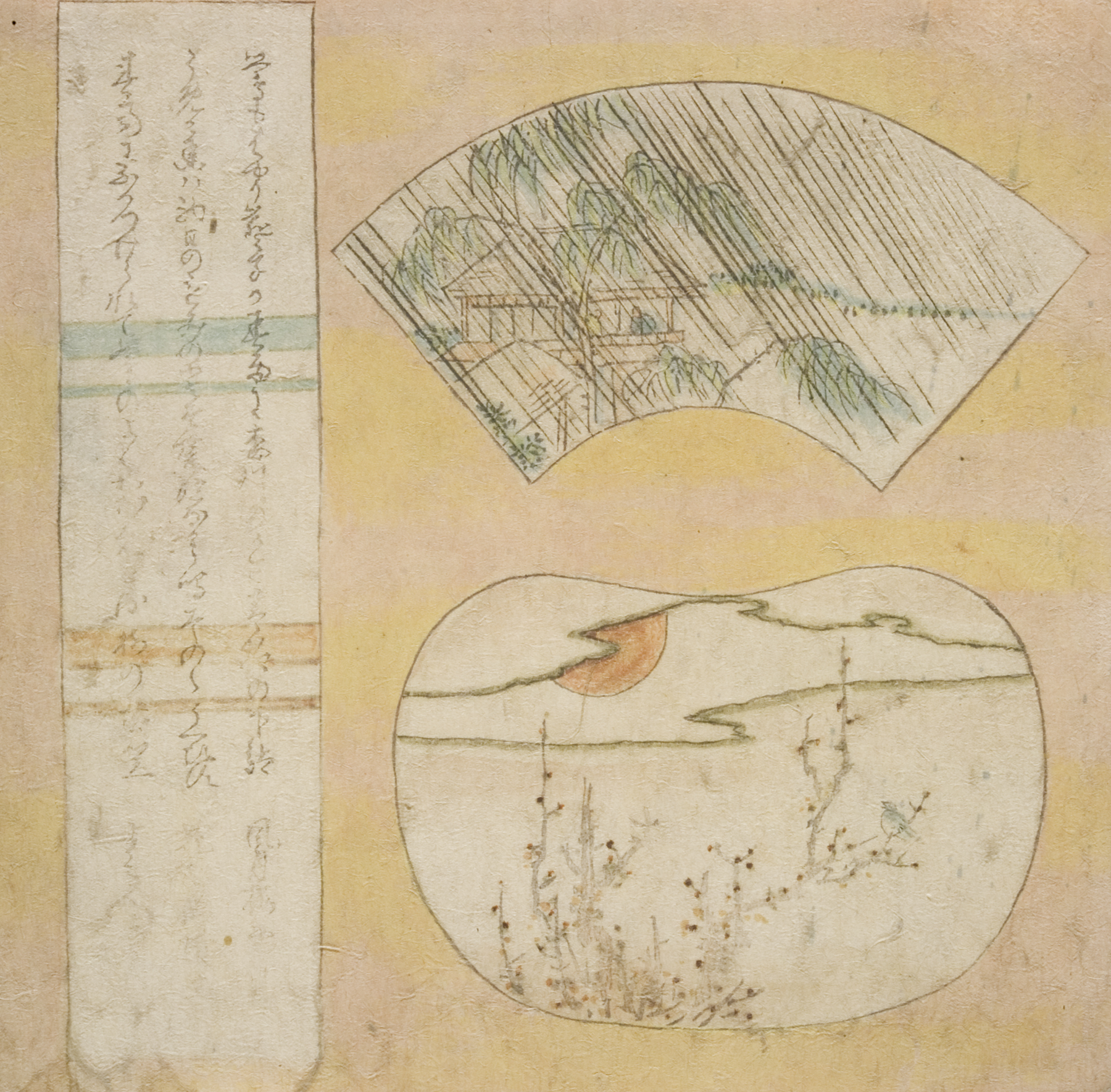 vignettes of rain and a plum tree, circa 1810s, Edo period (1600–1868)