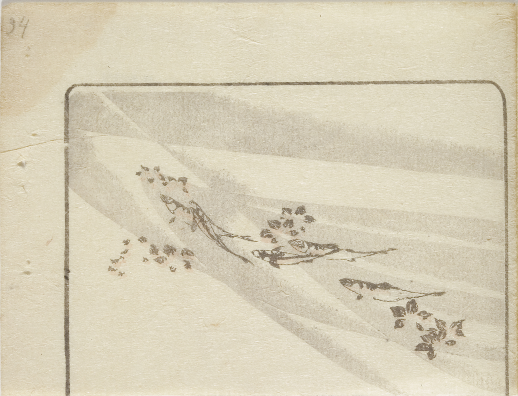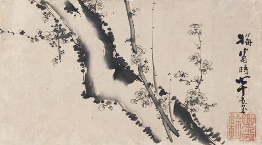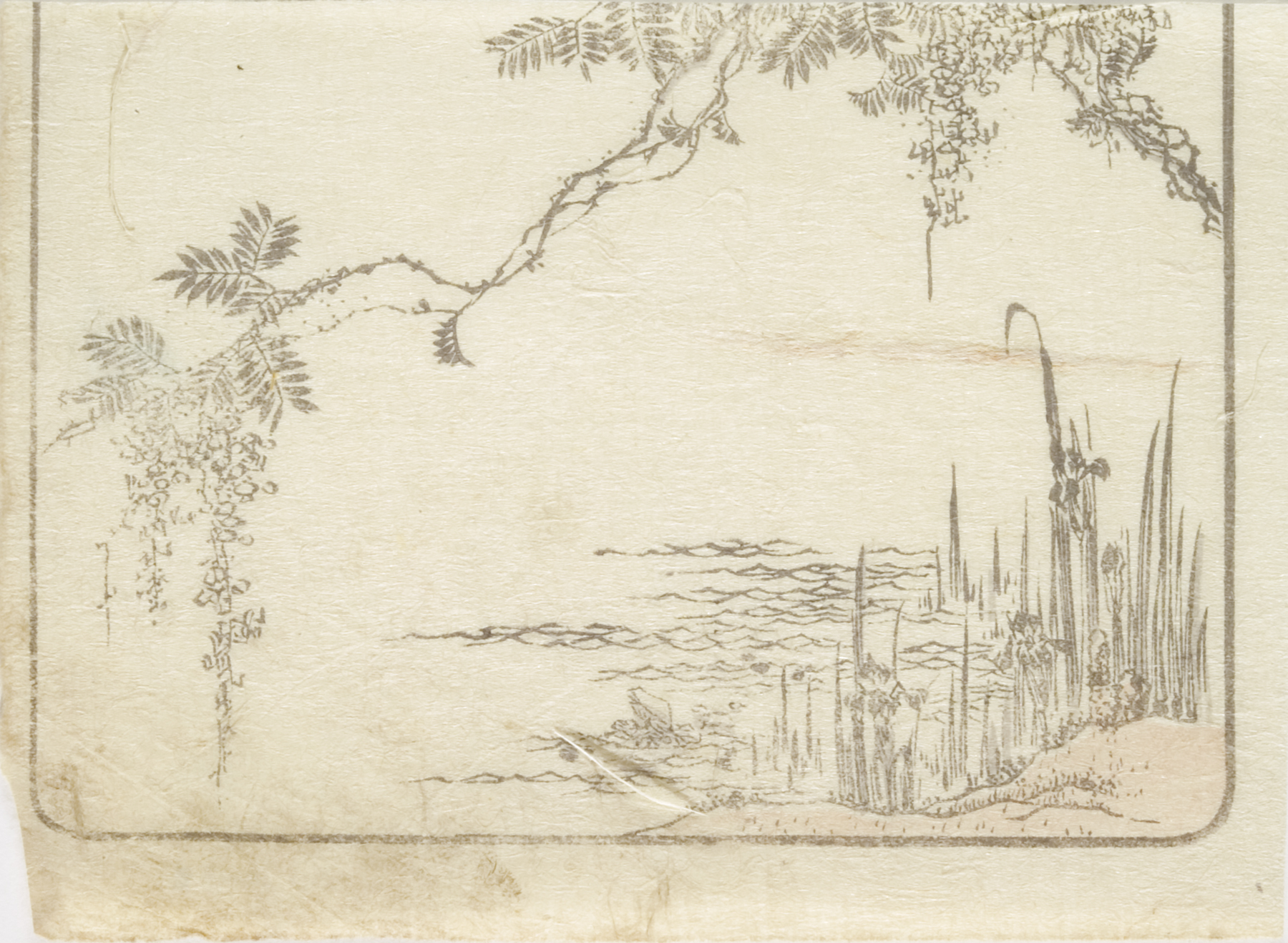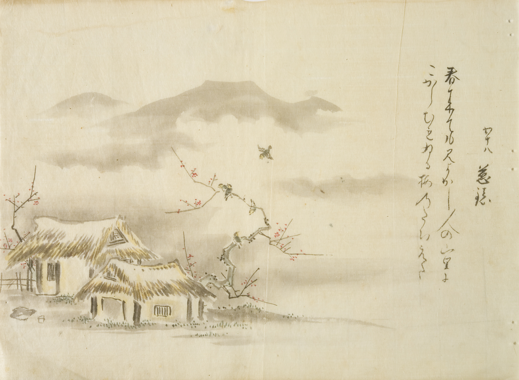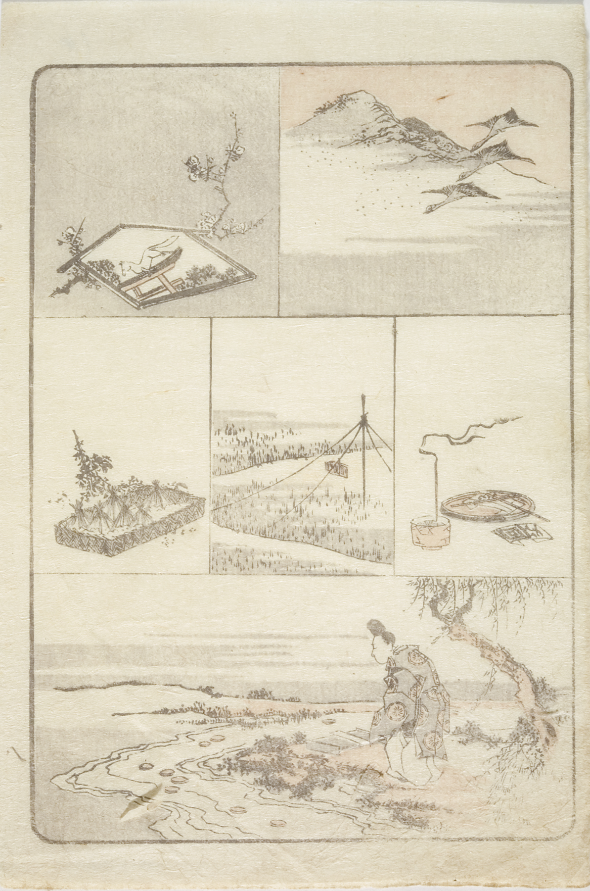 vignettes of rain and a plum tree, circa 1810s, Edo period (1600–1868)