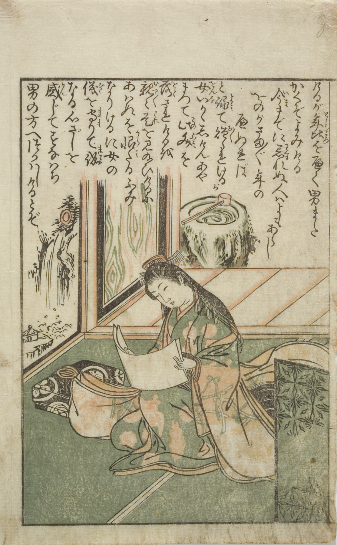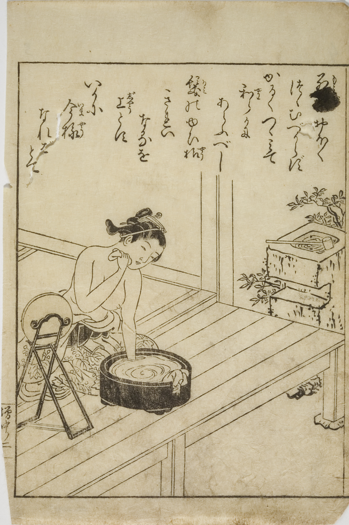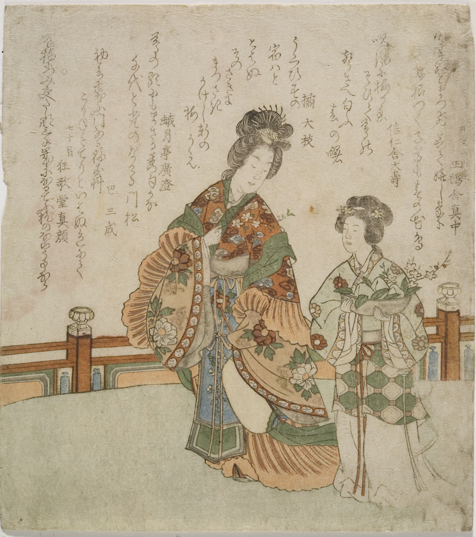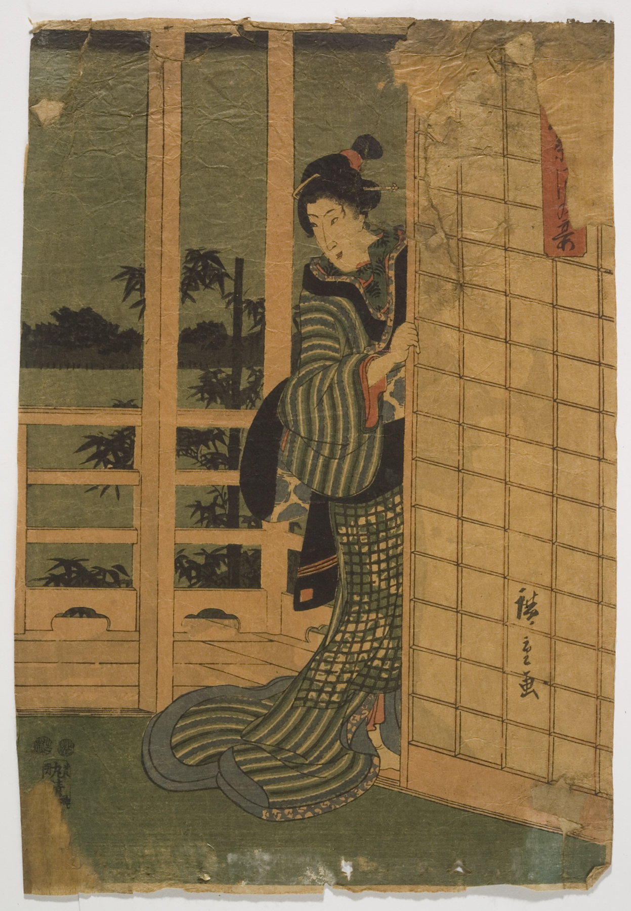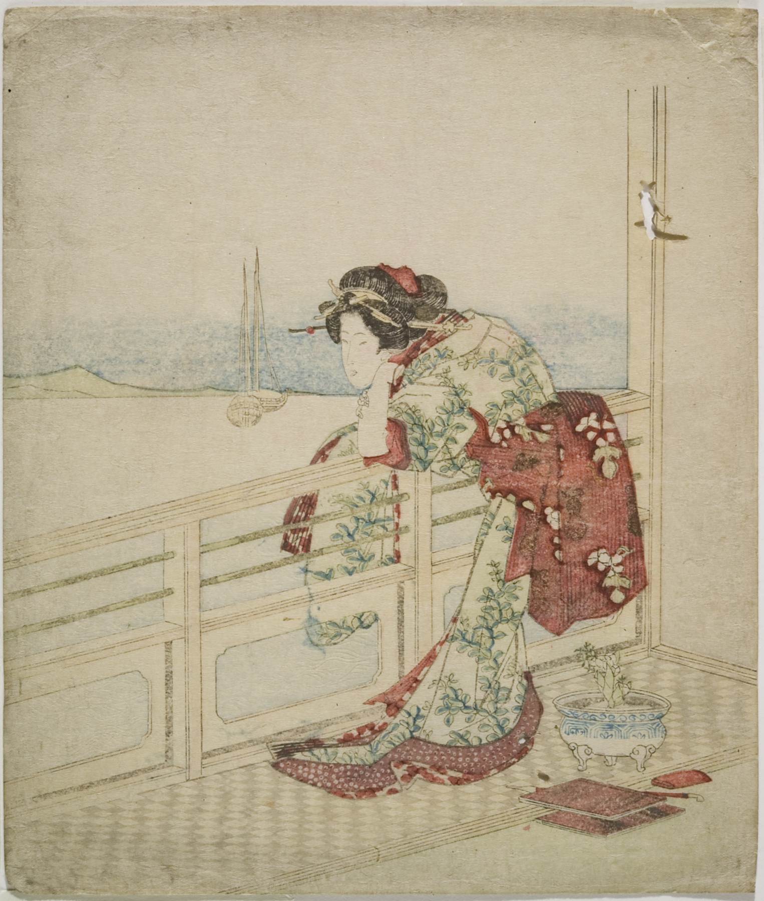 woman leaning on balcony, early 1820s, Edo period (1600–1868)