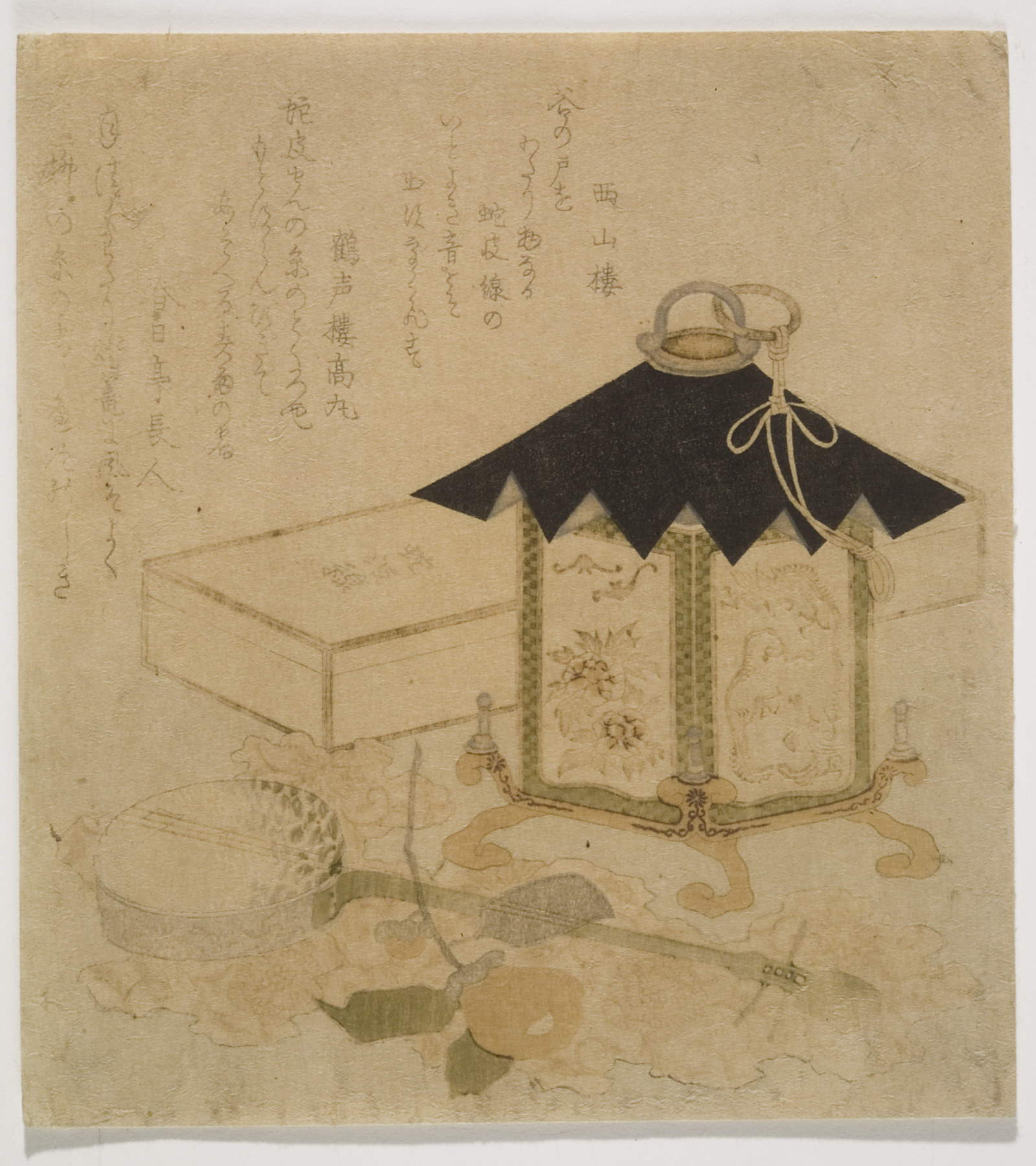 lantern, camellia, samisen, snake skin, 1821?, Edo period (1600–1868)