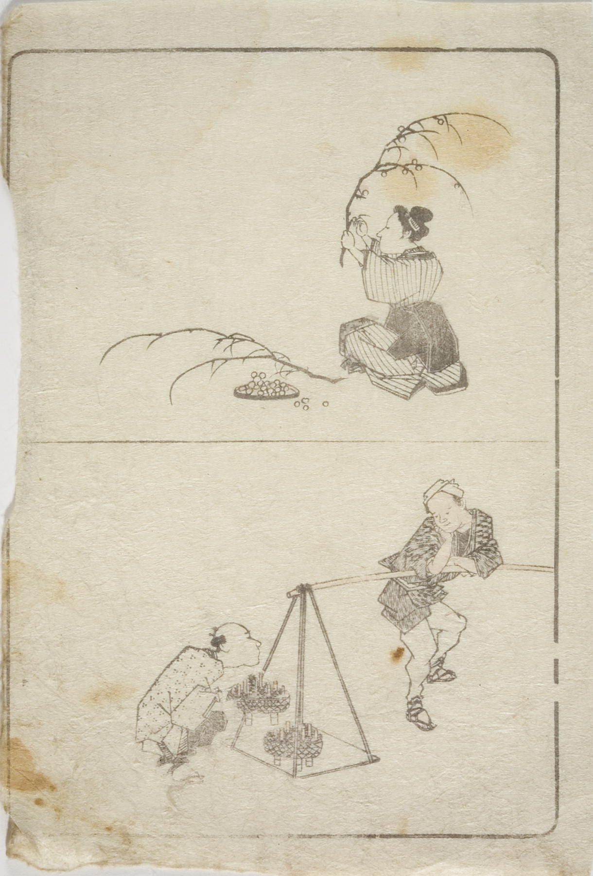 page from volume two of three volumes of everyday scenes, circa 1740–1759, Edo period (1600–1868)
