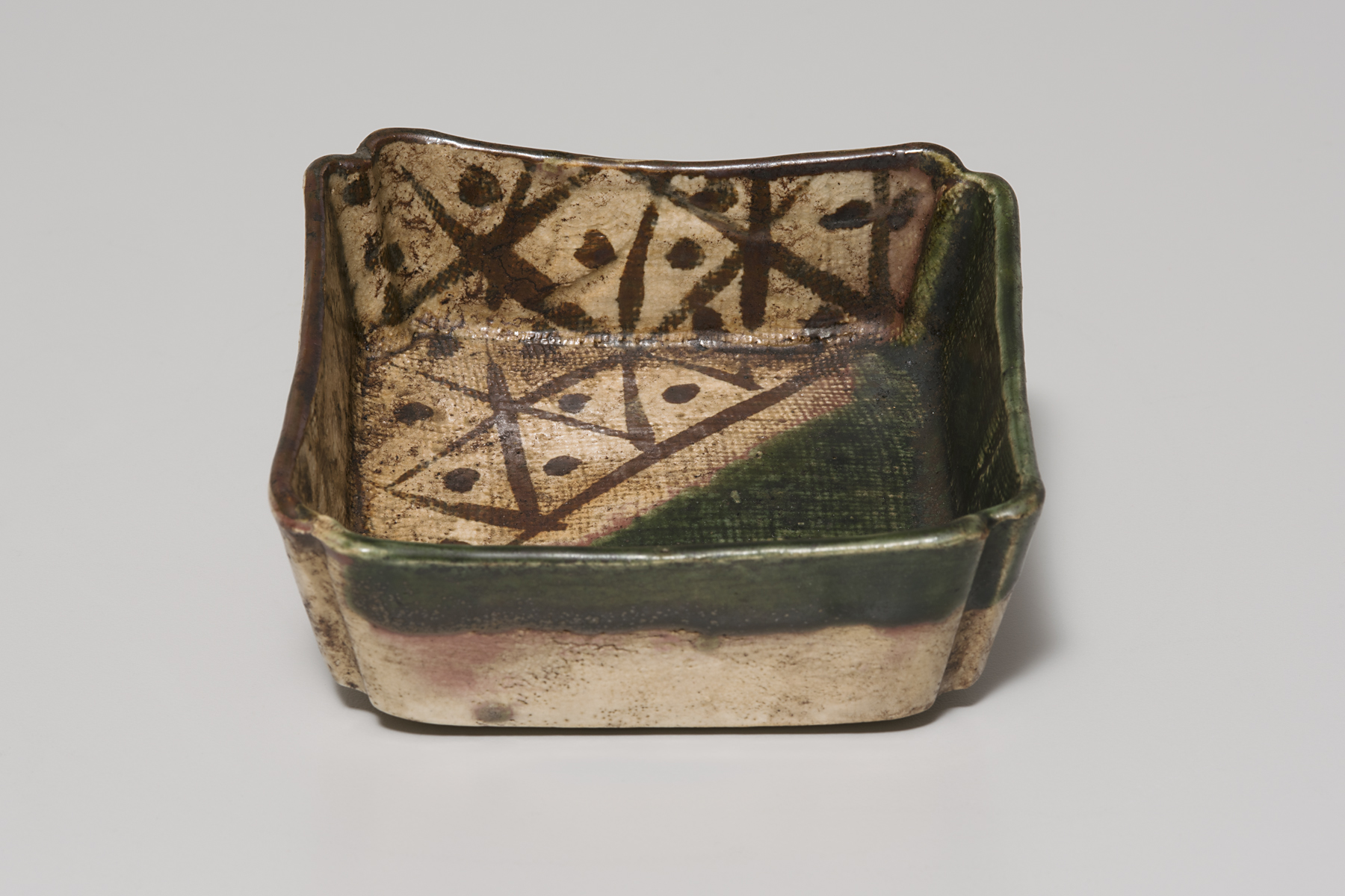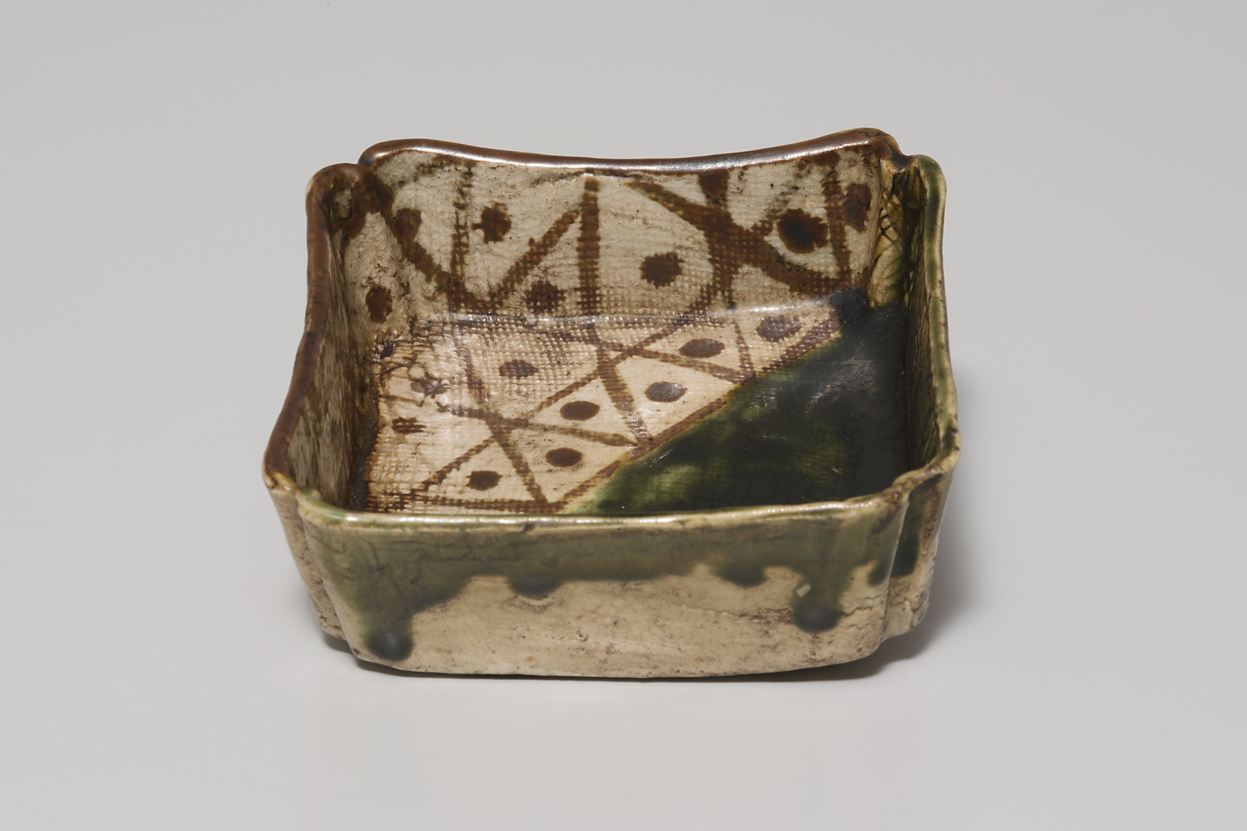 をりべ かくがた (oribe kakugata) oribe square dish, 1800s, Edo period (1600–1868)