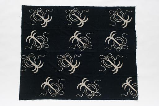 型染め布団じ katazome futonji (bed cover with phoenix, paulownia, and waves), early 1900s, Meiji period (1868–1912)