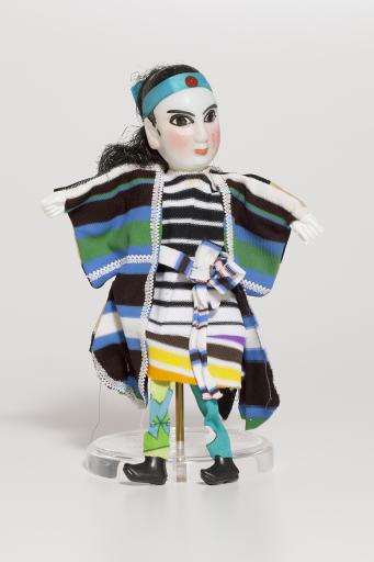 hand puppet of a male figure in a kimono, mid 1900s