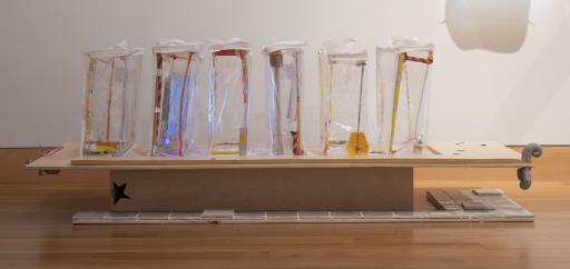 Material/technique: null; plastic; steel; wire; vinyl; adhesive tape; ceramic; string; nails; nylon cord; aluminum; pen; marker; rubber; wood; plywood; electric lights; foam