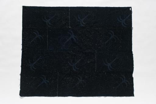 Material/technique: stenciling; cotton; dyeing; weaving